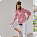 Blus med broderi på ärmarna, röd-vit