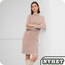 Stickad klänning med vacker mönsterstickning längs frampartiet. Klänningen har ljusa dekorränder kring hals, ärmar och nederkant. Bred ärmribb....... Klicka här