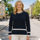 Seglarinspirerad bomullströja, marin-vit